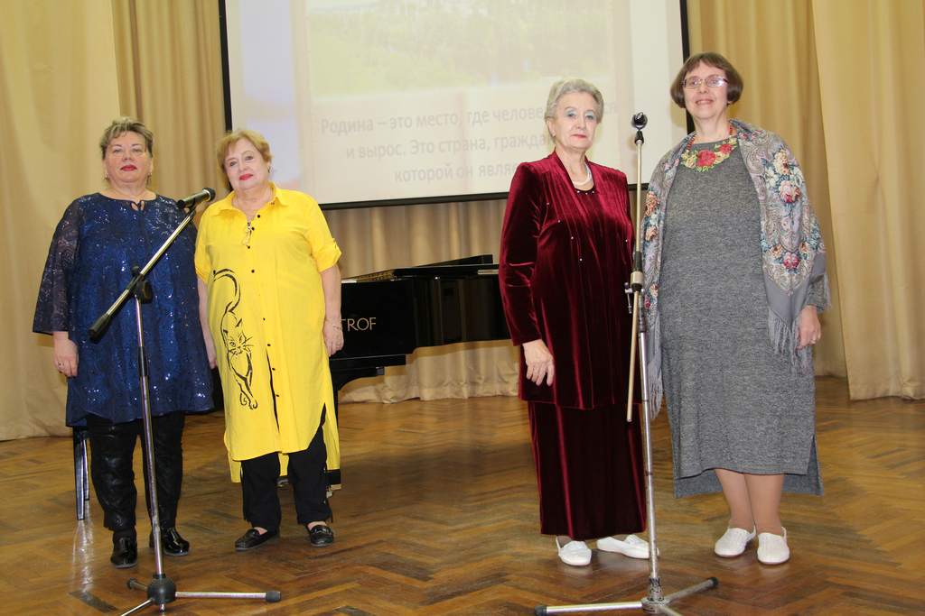 На сцене блистали: солисты, дуэты, трио, квинтет, вокальная группа педагогов-ветеранов. Прозвучали известные песни: «На Тихорецкую состав отправится…», «Шутка», «Сенокосная пора», «Белоснежная вишня», «Пчелочка златая» и др.