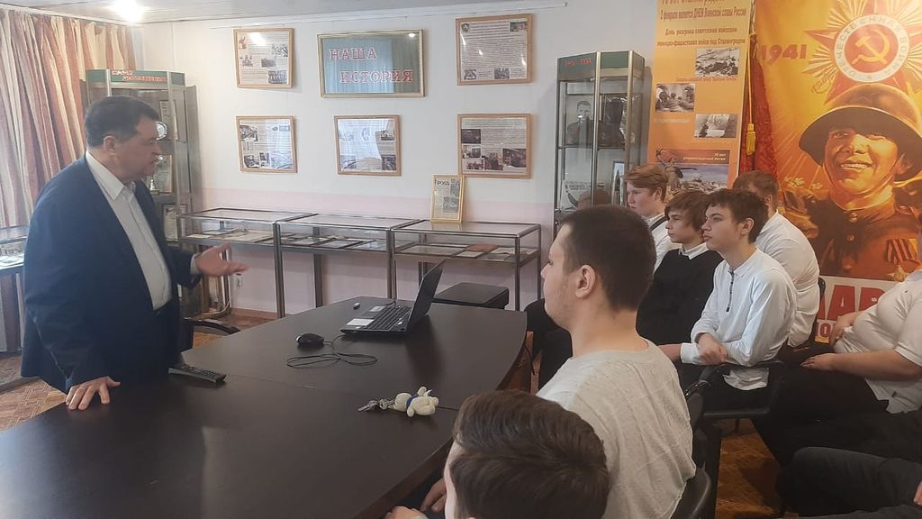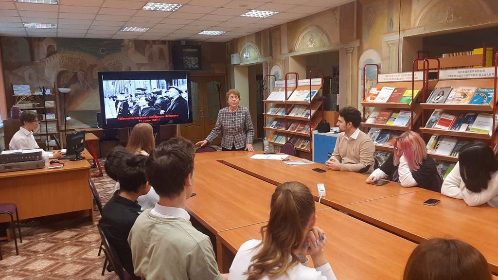 На занятии Анатолий Израилевич рассказал ребятам про контрнаступление советских войск против немецких войск в битве под Москвой (1941), познакомил ребят с некоторыми фактами о легенде советского танкостроения. Педагог подчеркнул, что наиболее массовым танком в Битве под Москвой являлся средний танк Т-34. И известно это далеко не всем. И уж тем более современным историкам не ведомо, что легендарному танку Т-34 принадлежит не только тактическая, но и стратегическая роль в спасении столицы нашей Родины. В финале Урока мужества ребята исполнили Гимн Москвы. Педагог-ветеран рассказал ребятам также историю создания этого гимна.