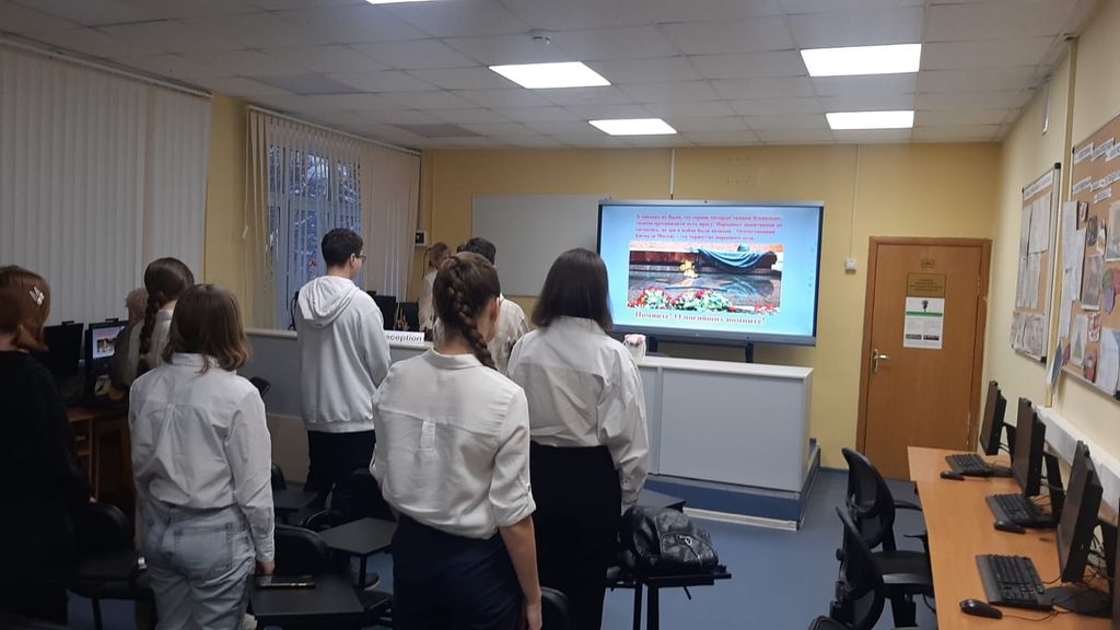 В память о всех героях нашей страны была проведена минута молчания .Пусть же имена героев, павших и живых, вершивших бессмертные подвиги в далекие года и в операциях наших дней, убеленных сединой и совсем юных, всегда согревают наши сердца. В этой преемственности традиций мужества и патриотизма – наша гордость и наша сила.